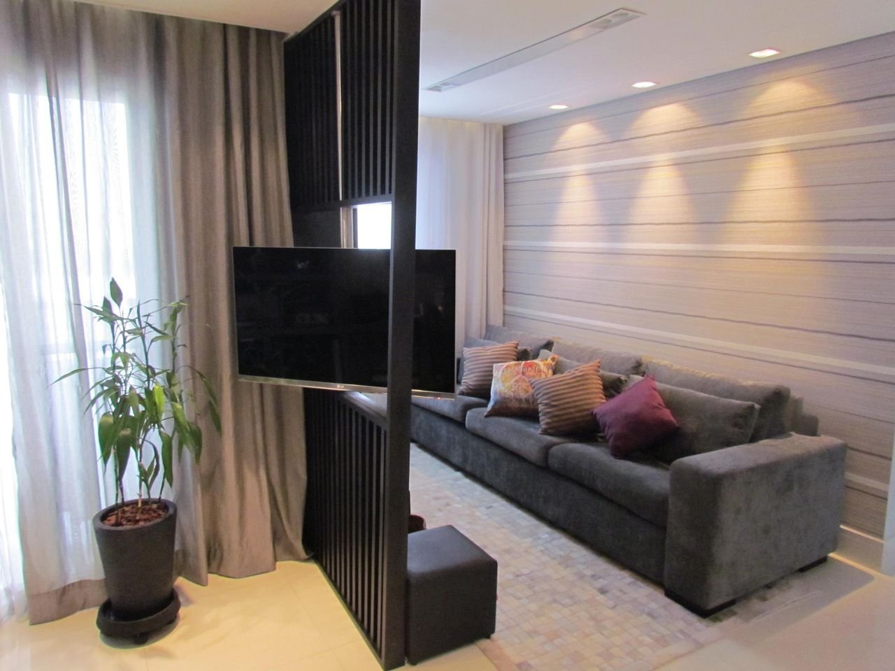 - Гостинная: ТВ-перегородки прекрасно вписываются в интерьер гостиной, где телевизор часто служит центральным элементом развлечений. Они могут также сочетаться с диванами и столиками для создания уютного уголка.